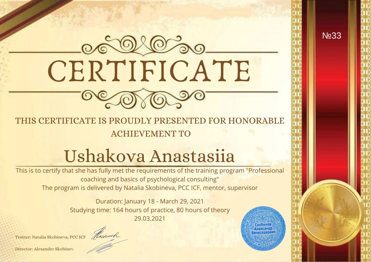 Когда я записывался на коучинговую группу, я не знал, что меня там ждет, какой будет результат будет и нужно ли оно мне. Но, я не пожалел о сделанном выборе, после прохождения курса, все изменилось в лучшую сторону, это и мышление и как борооться со "страхами" чего-то нового и неизвестного. Каждое занятие имело разный формат, и не было такого, что ты сидишь и тебе становиться не интересно, скучно или хочешь пропустить занятие, потому-что нет настроения, такого не было. Ты понимал, это то чего тебе не хватало для дальнейшего развития. Спасибо Насте за такую возможность, за интересное и полезное предоставление материала